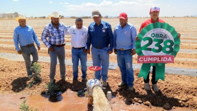 En San Juan de los Hornillos entregó la obra número 238, en la construcción de segunda etapa de la línea de conducción, de 1.5 kilómetro de tubería con una inversión de 2.3 millones, para la tecnificación del riego en 80 hectáreas.