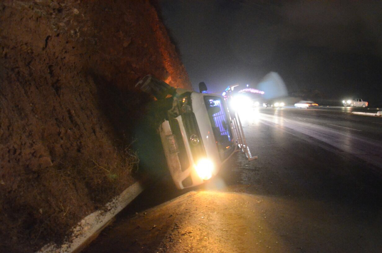 Las víctimas tienen entre 35 y 50 años de edad, y según su testimonio, la unidad comenzó a derrapar por varios metros hasta que quedó volcada de costado entre la canaleta de agua y las faldas del cerro.