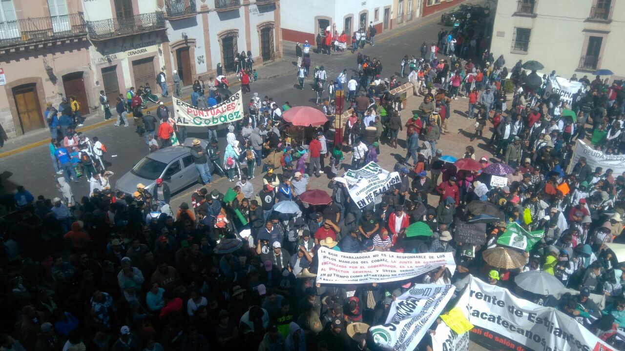 Zacatecas, Zac.-El Sindicato Único de Personal Docente y Administrativo del colegio de Bachilleres del Estado de Zacatecas (Supdacobaez), realizó una marcha de protesta por la falta de pago de la segunda parte del aguinaldo a mil 500 trabajadores y docentes del subsistema.Además, señalaron líderes del sindicato, se tiene una situación de inseguridad en la institución y los más perjudicados pudieran ser los más de 17 mil jóvenes que estudian en las aulas del Cobaez.