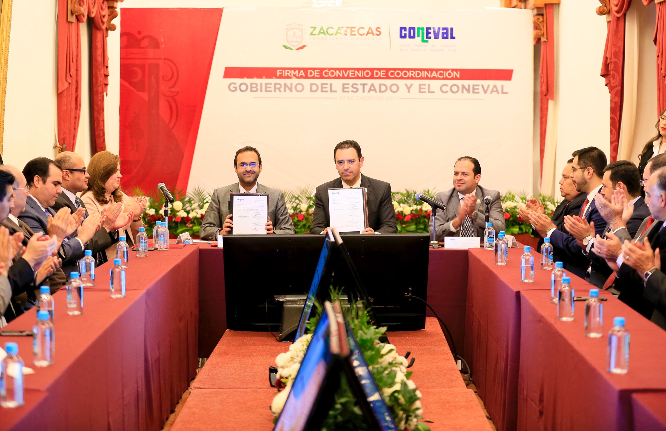 En el Palacio de Gobierno, el mandatario estatal se reunió este viernes con el Secretario Ejecutivo del Coneval, Gonzalo Hernández Licona, así como con integrantes del Gabinete estatal, para firmar por primera vez de manera formal para Zacatecas, un acuerdo con el organismo encargado de medir la pobreza en México.
