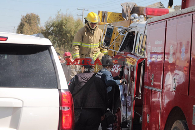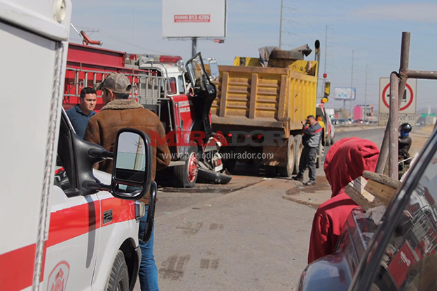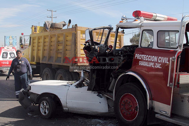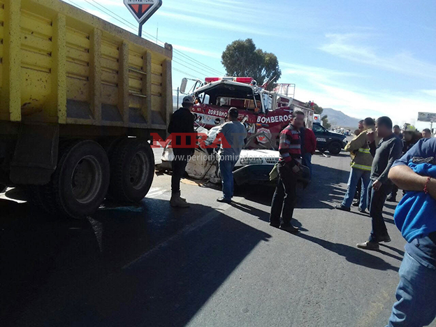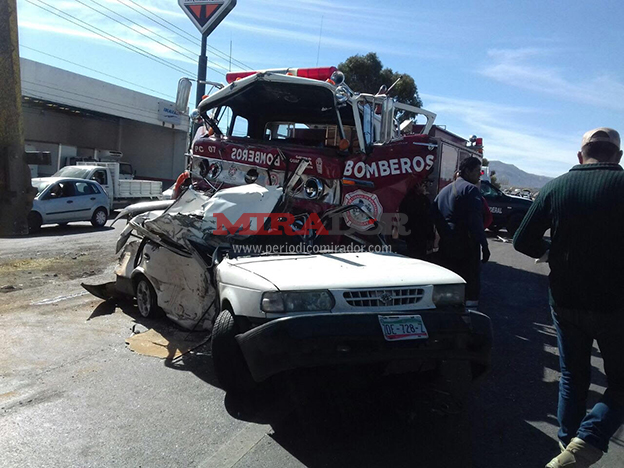 Guadalupe, Zac.- Un camión de bomberos de la Dirección de Protección Civil de Guadalupe, no pudo llegar a atender un reporte debido a que participó en un choque contra un automóvil que se atravesó a pesar de escuchar las sirenas.