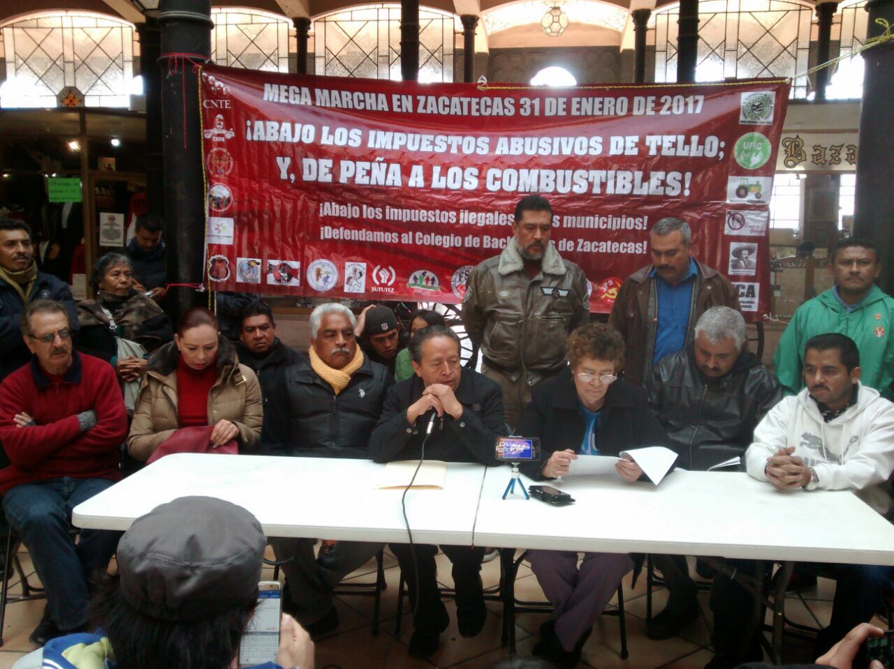 Así, hicieron un llamado a la Legislatura del estado a que convoque a un periodo extraordinario de sesiones, antes del 5 de febrero, y decrete la anulación de todos los nuevos impuestos y leyes de ingresos y hacienda, manteniéndose las tarifas de 2016. También se deberá cancelar los aumentos en las tarifas de agua potable, transporte y otros servicios y multas de todo tipo; la diminución de salarios, bonos y prestaciones de funcionarios de los 3 poderes y de organismos públicos y descentralizados. “Nadie podrá percibir un salario mayor a 40 mil pesos mensuales”, señaló, y “funcionario que no esté de acuerdo, que renuncie”.
