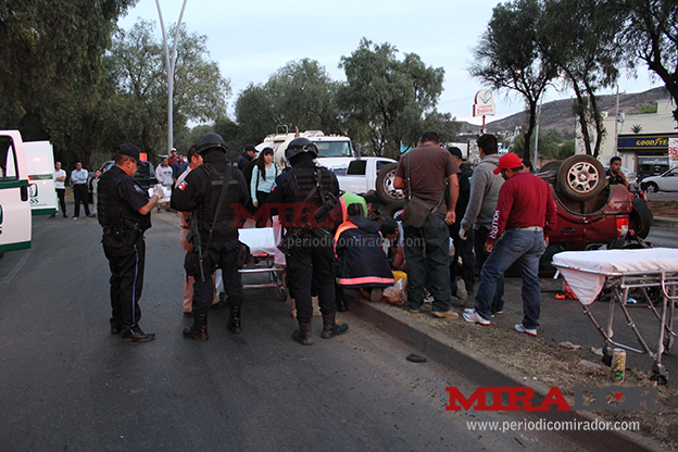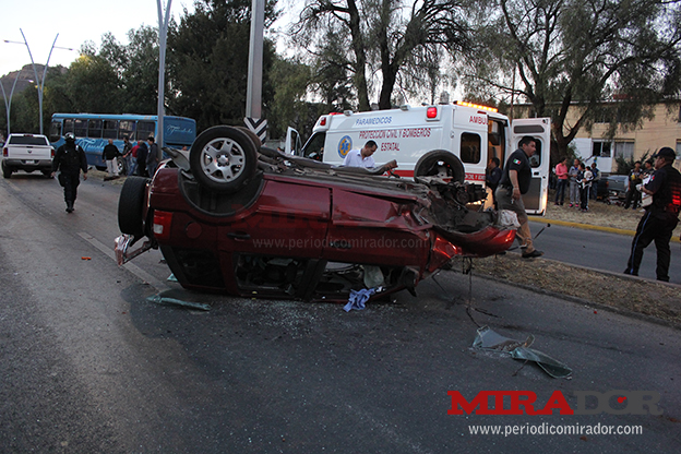 Zacatecas, Zac.- Cinco personas resultaron lesionadas tras aparatoso accidente ocurrido la tarde de este martes sobre el eje vial metropolitano, a la altura de la agencia automotriz Renault.