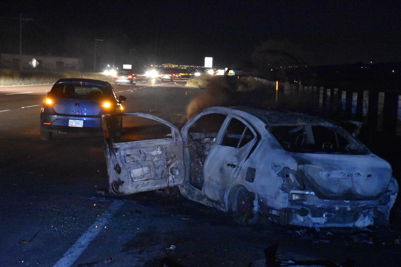 De inmediato se trasladaron elementos de Protección Civil a atender el percance, encontrándose que en el choque participaron un automóvil GM Saturn, color azul, que presentaba un fuerte impacto en la parte frontal, y un Nissan, Versa, que fue el que quedó consumido por las llamas, y que estaba a cerca de 10 metros del impacto.