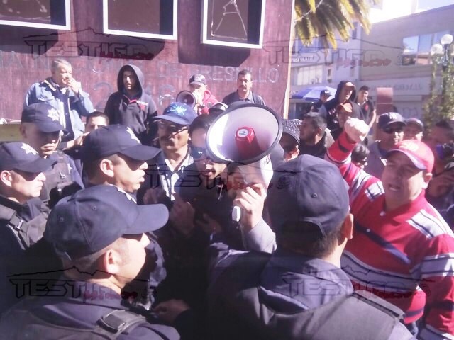 Fresnillo, Zac.- Justo en el día de la Bandera y mientras se desarrollaba el tradicional desfile conmemorativo integrado por niños de escuela y de prescolar., mineros de la sección 62 se manifestaron contra el alcalde José Haro del Real, sin embargo, intervinieron elementos de la Policía de la Preventivo y se realizó el conato de trifulca.