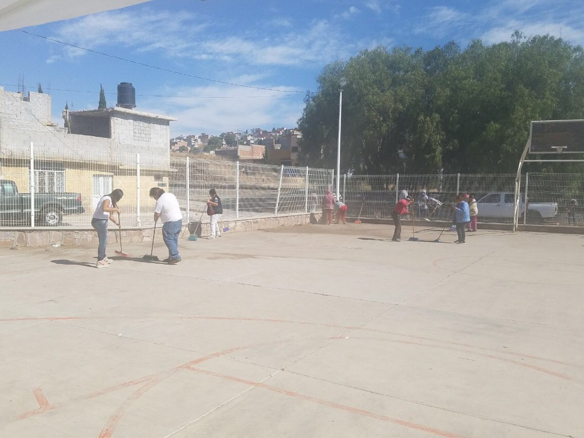 Desde temprana hora, la regidora Mariana Anaya Mota, encabezó las actividades a las que se integraron las y los integrantes de las cuadrillas; iniciaron con la limpieza del perímetro del polideportivo en tanto otras madres de familia y jóvenes compartieron y aprendieron del taller de bordado de servilletas.