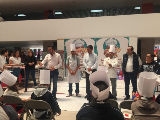 El taller de panadería infantil se instaló en el patio central de la presidencia municipal y los niños elaboraron sus propias pizzas y cupcakes.