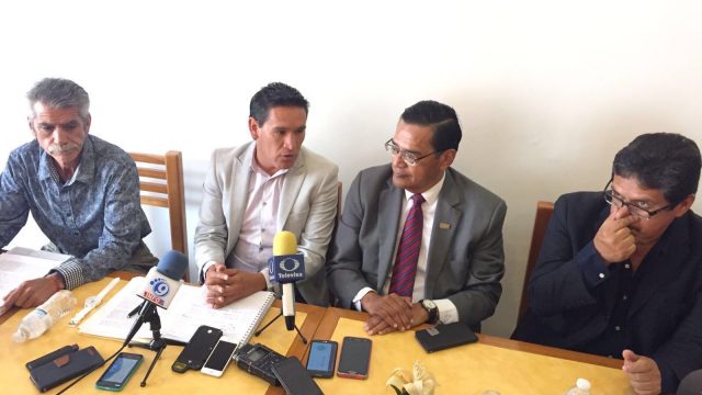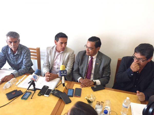 La conferencia de prensa fue encabezada por Oscar Castruita Hernández, secretario general de la Sección 58 del SNTE.