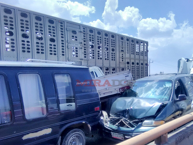Fueron en total doce unidades las involucradas en el percance, entre ellos dos tracto camiones y un autobús, además de camionetas y automóviles sedán.
