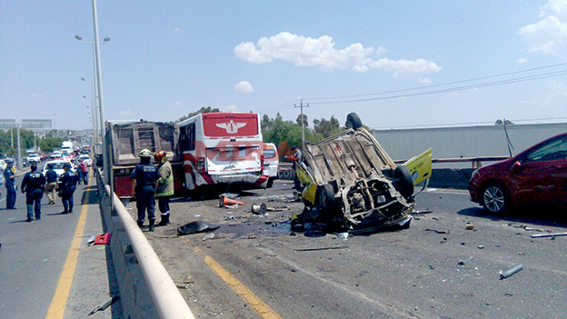 El accidente ocurrió en una curva en descenso, a la altura del Banco de Sangre, afectando la circulación en los dos sentidos, la cual fue cerrada por más de dos horas, según reportó Juan Antonio Caldera Alanis, titular de la Dirección Estatal de Protección Civil y Bomberos.