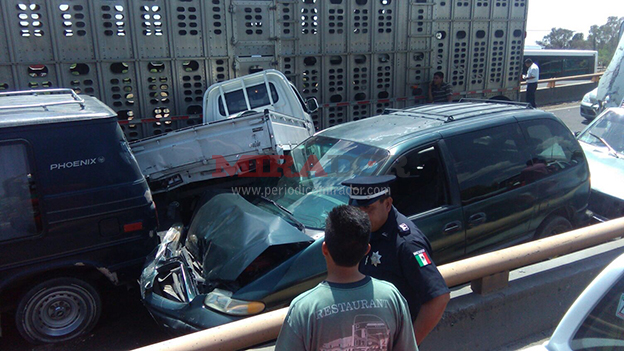 Guadalupe, Zac.- Cinco personas lesionadas, vehículos destruidos, volcados y encimados unos con otros fue el resultado de aparatoso accidente ocurrido la mañana de este sábado sobre el bulevar Bicentenario (antes tránsito pesado).