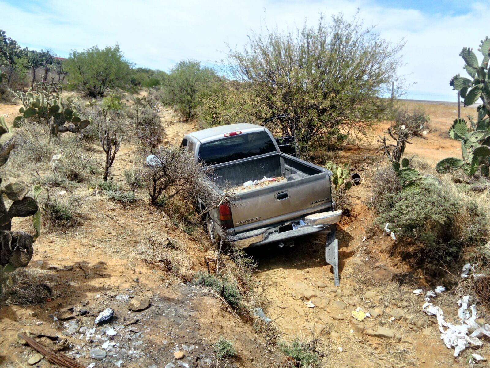 En tanto, en las inmediaciones de la comunidad de Plateros, en una brecha, elementos de la Policía Estatal Preventiva encontraron abandonada una camioneta Chevrolet Silverado, color arena o azul claro, la cual tiene impactos de proyectil de arma de fuego.
