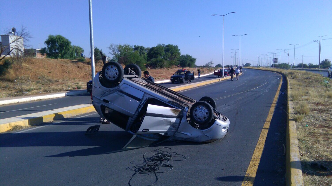 Zacatecas, Zac.-Un fuerte accidente automovilístico tipo choque con volcadura se registró la mañana de este lunes en el fraccionamiento Villas de Guadalupe, en el que una persona resultó gravemente lesionada al quedar prensada con el volante.