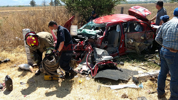 Una mujer que viajaba en el Corolla tuvo que ser asistida por los cuerpos de rescate, que utilizaron las llamadas «quijadas de la vida» para sacarla de la unidad y trasladarla de inmediato al Hospital General Zacatecas en estado grave.