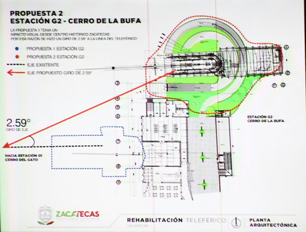 La obra tendrá una inversión total de 105.7 millones de pesos y que los trabajos reanudarán este 29 de mayo. También hicieron hincapié en que el proyecto incluye construir una nueva estación en el cerro de la Bufa, pero con un giro de 2.59 grados, dirección noreste, en cumplimiento con la normativa del INAH.
