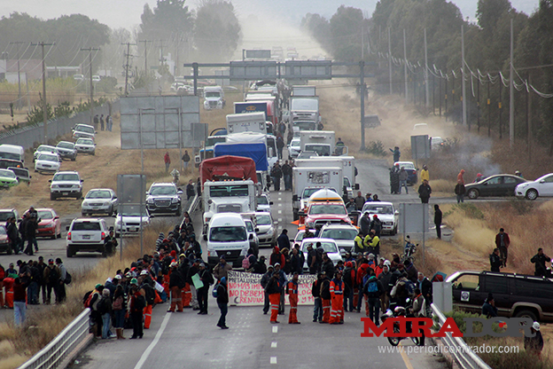 Día 1).-Se realiza bloqueo de la carretera 45 por trabajadores mineros, como acto de protesta ante el anuncio del impuesto minero anunciado por el gobierno del Estado.