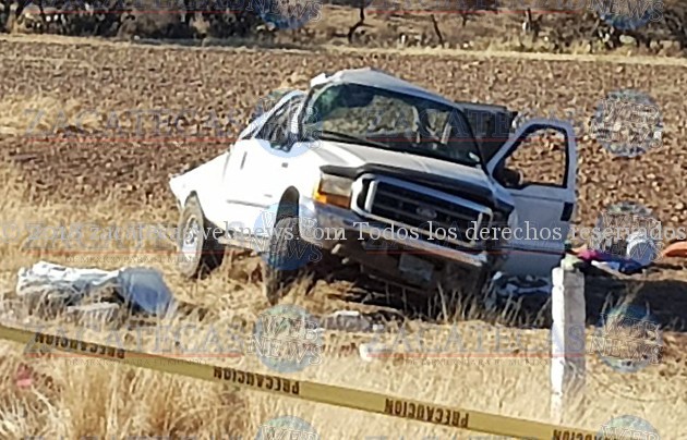 Zacatecas, Zac.- La Cantuna Sain Alto Zacatecas.- Este día se registró un accidente a la altura de a la comunidad de Cantuna en Sain Alto, sobre la carretera federal número 45, donde el conductor de una camioneta Ford, cabina y media color blanco perdió el control de la unidad, salir del camino y dar varias volteretas sobre su propio eje.