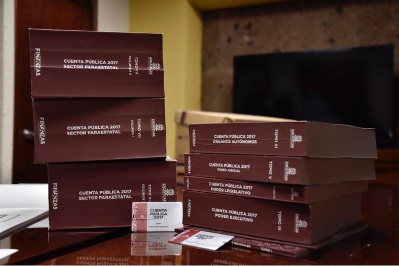 La Cuenta Pública entregada a la Honorable Legislatura, a través de su Secretario General, Refugio Medina Hernández, está integrada por siete tomos: