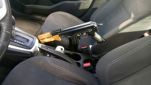Al proceder con una revisión, en el interior de la unidad se localizó un arma larga AK-47 y un arma larga tipo rifle calibre 22 milímetros.
