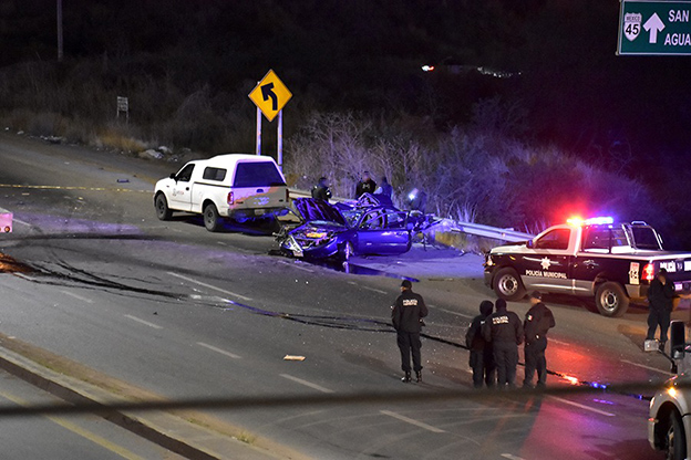 El percance ocurrió alrededor de las tres de la mañana, cuando el conductor de un automóvil Honda Accord, color azul, con placas de Zacatecas, iba en sentido contrario y chocó contra un tractocamión, quedando destrozado el vehículo compacto.