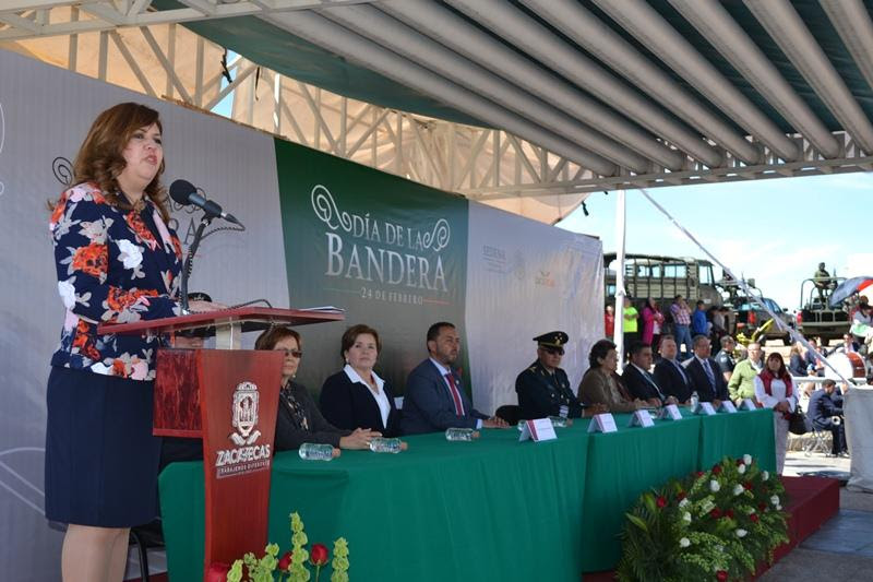 Zacatecas, Zac.- En el acto conmemorativo por el Día de la Bandera, la Secretaría General de Gobierno, Fabiola Gilda Torres Rodríguez, hizo un llamado a la unidad pues aseguró que sólo una nación cohesionada, solidaria y armoniosa puede vencer los obstáculos y amenazas que se presentan.