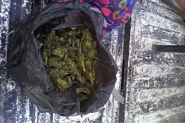 Uno de los hombres cargaba una mochila de tela de diversos colores, en cuyo interior traía una bolsa de plástico, tipo camiseta y color negro, la cual contenía vegetal verde y seco, con las características y olor de la mariguana, que dio un peso de 540 gramos, aproximadamente.