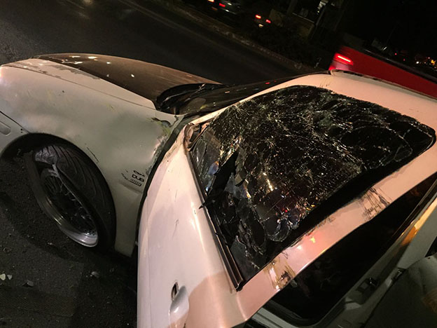 Por la elevada velocidad que llevaba, el auto derrapó y se impactó contra el camellón lateral, quedando en sentido contrario.