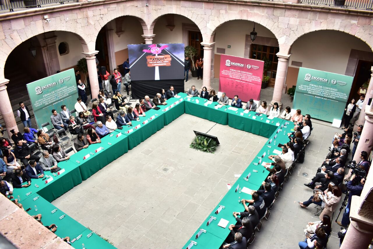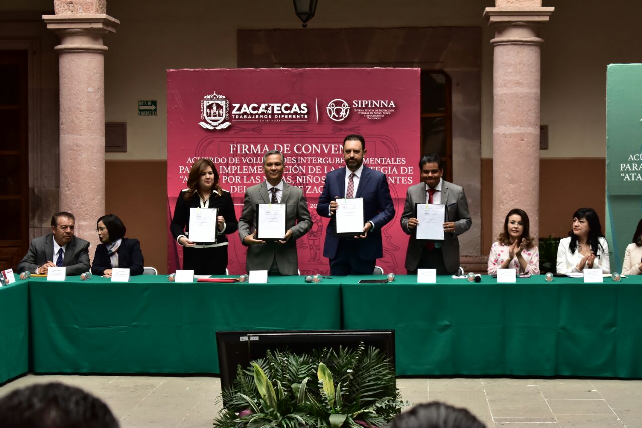 Zacatecas, Zac.- El titular del Poder Ejecutivo, Alejandro Tello Cristerna, y el secretario ejecutivo del Sistema Nacional de Protección Integral de Niñas, Niños y Adolescentes (Sipinna), Ricardo Bucio Mujica, firmaron un acuerdo para implementar en la entidad el programa transversal Atajos, que prevendrá la mortalidad infantil y el embarazo en adolescentes; protegerá la salud y el desarrollo social de la niñez; combatirá el abandono escolar, las adicciones y sobrepeso; vinculará a la juventud a programas que los empoderen; y erradicará contenidos informativos que vulneren sus derechos.