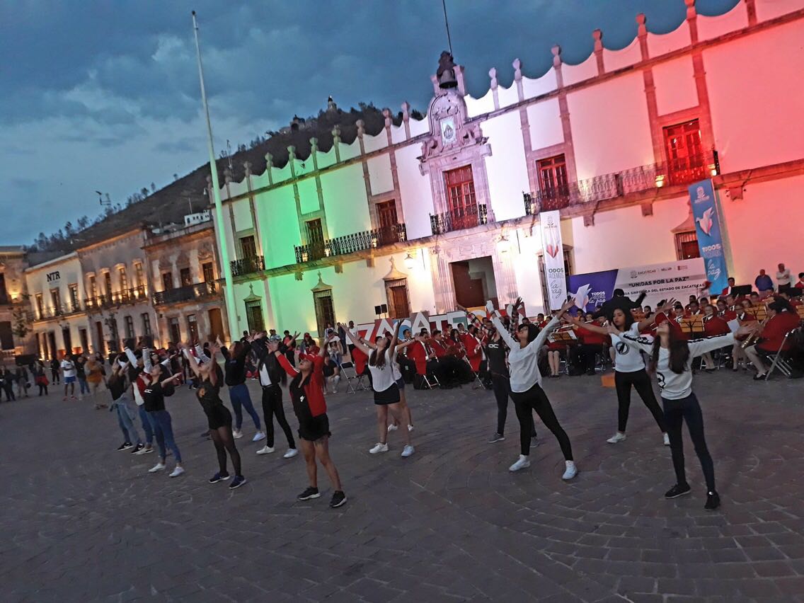 Zacatecas, Zac.- Dentro del programa de trabajos por la Conmemoración del Día Internacional de la Mujer “Todas las Mujeres Todos los Espacios”, promovido por la Secretaría de las Mujeres, y la campaña “Unidas por la Paz”, el Gobierno del Estado llevó a cabo un concierto de la Banda Sinfónica del Estado y un flashmob, por parte del grupo Boomers Dance Crew.