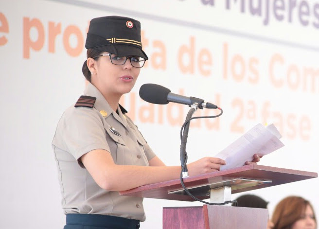 “Actualmente, somos más de 13 mil las mujeres que decidimos pertenecer al Ejército y Fuerza Aérea mexicanos. No dejamos de ser ejemplo como madres, hermanas, esposas e hijas; además, servimos a México con entereza, sacrificio y compromiso. La sociedad mexicana puede estar segura que si las mujeres ingresan al Instituto Armado y deciden portar el uniforme tendrán las mismas oportunidades y condiciones que los hombres, porque la entrega militar es incondicional: siempre sostenida en leyes reglamentos, valores y virtudes”.