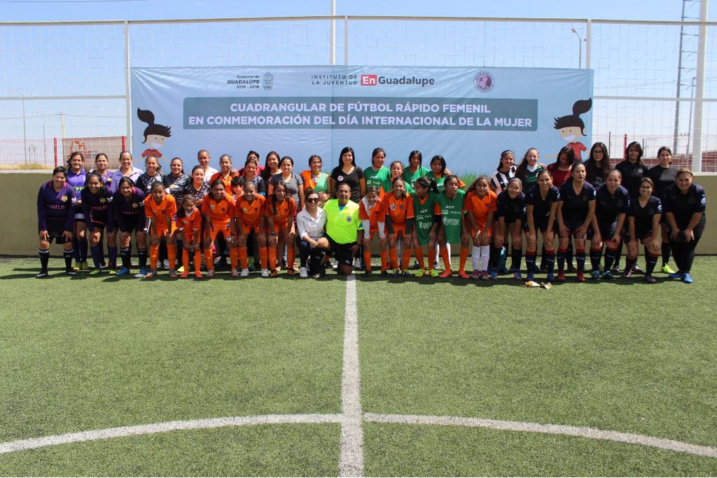 Guadalupe, Zac.- Como parte de las actividades que realiza el Gobierno de Guadalupe, en el marco de la conmemoración del Día Internacional de la Mujer, se llevó a cabo la premiación del cuadrangular de futbol rápido femenil realizado en el parque El Edén en la Colonia Villas de Guadalupe.