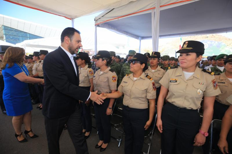 Además, en un hecho sin precedentes en la historia de la entidad, el Jefe del Ejecutivo estatal reconoció la participación y el trabajo de las mujeres en las Fuerzas Armadas, en este caso en la XI Zona Militar, con sede en el municipio de Guadalupe, y comandada por el General Guillermo Almazán Bertotto.