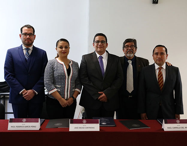 Reunidos en el Salón de Usos Múltiples del Juzgado de Control y Tribunal de Enjuiciamiento del Distrito Judicial de la Capital del Poder Judicial del Estado y en presencia del Magistrado Presidente, Armando Ávalos Arellano y del Doctor Raúl Carillo del Muro, Director de la Escuela Judicial, así como de los miembros del jurado integrado por la Doctora Jenny González Arenas, Doctor José Enciso Contreras y el Doctor Raúl Federico García Pérez, escucharon la tesis expuesta por el funcionario judicial.