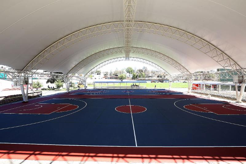 En el domo, donde están las canchas antiguas de básquetbol de cemento: se niveló y se puso recubrimiento plástico, lo que permite tener unas chanchas más hábiles. En esa área se tendrán tres canchas de vóleibol, dos de básquetbol, una de fútbol de sala y una de hándbol.