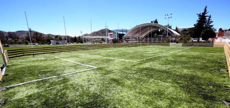 Además, uno de los campos de fútbol de pasto natural se extendió a todo lo que era el estacionamiento para albergar tres canchas de fútbol para niños y que a la vez servirá para el área de lanzamientos.