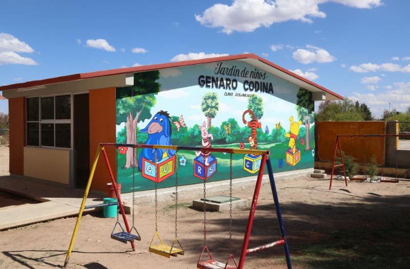 En el jardín de niños Genaro Codina, de la comunidad Boquilla de Arriba, Río Grande, se entregó la obra 98, que consistió en la construcción de un aula didáctica, el mejoramiento de la estructura regional y los servicios sanitarios, para beneficio de 69 estudiantes.