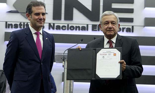 Zacatecas, Zac.- El Instituto Nacional Electoral (INE) recibió la solicitud de registro de Andrés Manuel López Obrador como candidato a la Presidencia de la República por parte de la Coalición “Juntos Haremos Historia” (Morena-PT-PES).