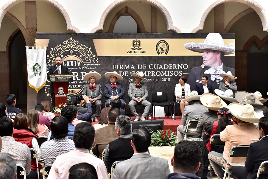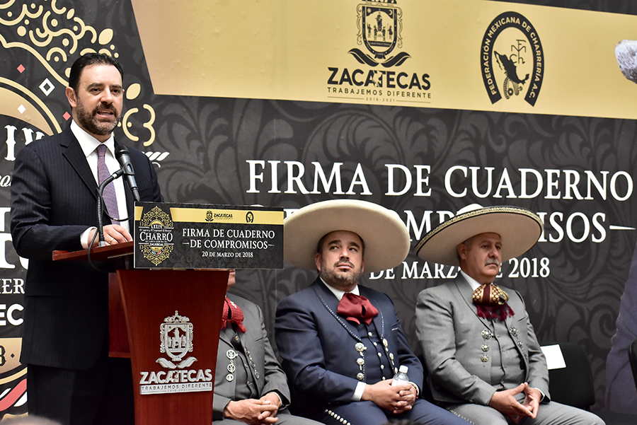 Zacatecas, Zac.- La charrería une y acerca a familias, es por ello que Zacatecas se enaltece en celebrar por séptima ocasión la sede del Campeonato Nacional Charro «Carlos Mier Macías», afirmó el Gobernador Alejandro Tello, durante la firma del cuaderno de compromisos de la edición 74 de este torneo.
