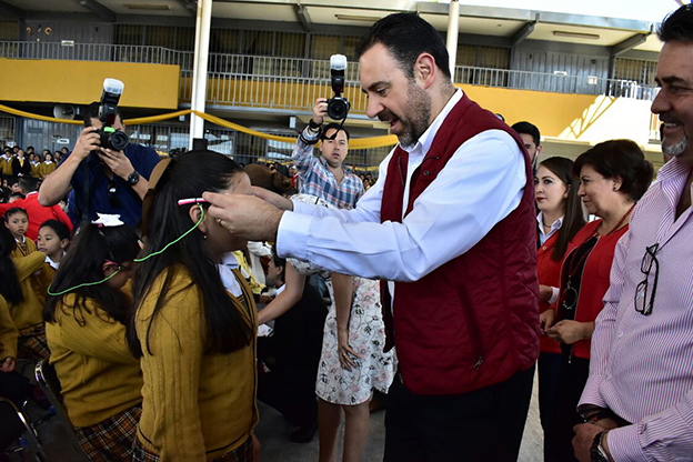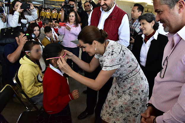 Agradeció, en ese sentido, a la Presidenta Honorífica del DIF por su decisión de ampliar este año el programa y llegar a todos los niños de primaria que lo necesiten, «Ahora tenemos la certeza de que ningún niño que los necesite se quede sin lentes».