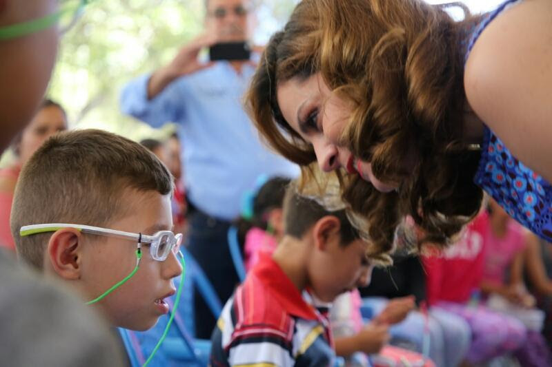 En giras de trabajo por separado, Cristina Rodríguez de Tello y Yadira Galván Sánchez, presidenta honorífica y directora general del SEDIF entregaron gratuitamente sus lentes a las niñas y niños que resultaron con problemas visuales, los que fueron detectados después de que les realizaron estudios optométricos a la totalidad de estudiantes de las escuelas primarias de los municipios de Tlaltenango, Tepechitlán, Juan Aldama y Miguel Auza.