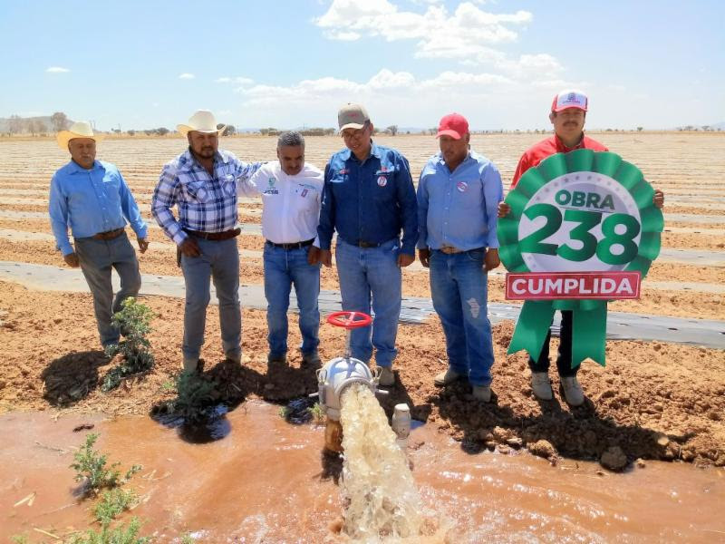 En San Juan de los Hornillos entregaron la obra 238: línea de conducción de seis kilómetros de seis pulgadas de diámetro, para el riego de 80 hectáreas, ejecutada por la Secretaría del Campo (Secampo), dentro del Programa Iassa-Sagarpa, con inversión de 2.3 millones, en beneficio de 50 familias.