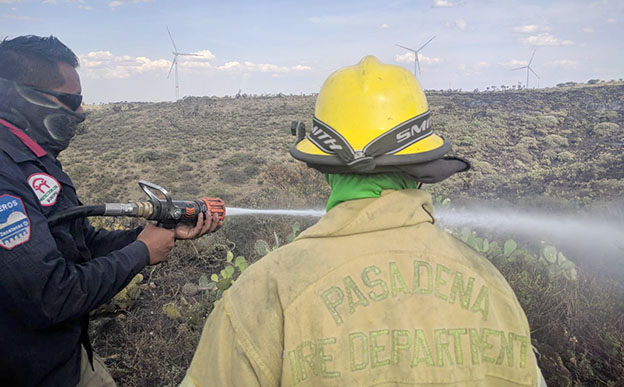 Zacatecas, Zac.- Desde la tarde del pasado martes 17 de abril se presentó un incendio de pastizal en las inmediaciones de una de las torres del Parque Eólico en la capital, por lo que, debido al riesgo de que se extendiera y se acercara a la estructura, elementos de la Unidad Municipal de Protección Civil de la capital, en conjunto con la Comisión Nacional Forestal (Conafor) y bomberos estatales, se coordinaron para sofocarlo, esfuerzos que, luego de tres días, rindieron frutos y finalmente fue extinguido.