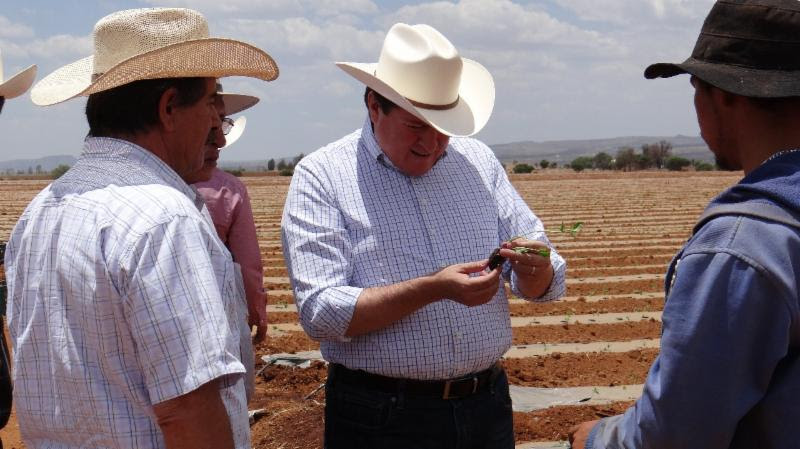 El productor Roberto Fajardo Trejo informó al Secretario del Campo, Adolfo Bonilla Gómez, los resultados del ciclo anterior, en el que entraron a la diversificación del cultivo y sustituyeron el frijol por chile y cebada, con lo cual lograron mayores rendimientos y mejores precios por tonelada.