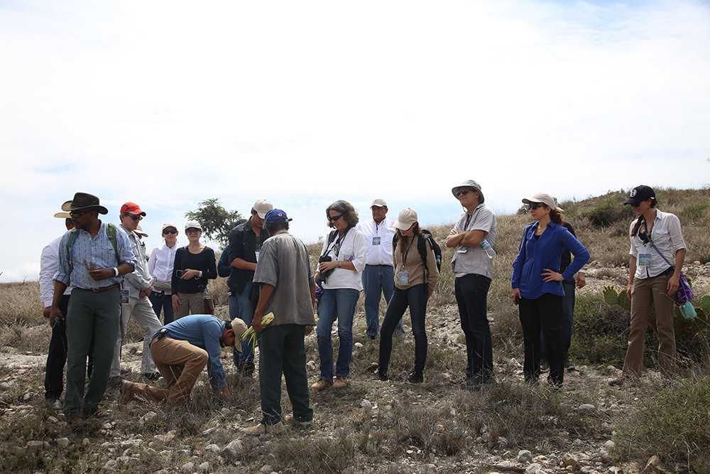 Parte del grupo de investigadores de Estados Unidos y México que participan en un taller binacional sobre zonas áridas el cual se lleva a cabo en San Luis Potosí, visitaron el Cañón de Lajas, donde conocieron algunas prácticas sustentables, como el aprovechamiento del ixtle. (Foto: Elizabeth Ruiz Jaimes/AMC.)