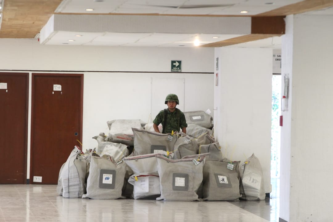 Zacatecas, Zac.- El Instituto Nacional Electoral (INE) garantiza que la recepción de los votos de los mexicanos en el exterior únicamente se realiza en la Bodega Central del Instituto, gracias a un procedimiento de controles de seguridad —que incluye lectura de códigos de barras—, mediante el cual se identifican, se separan, se envían por lotes y se custodian por personal de la Secretaría de la Defensa Nacional (SEDENA).