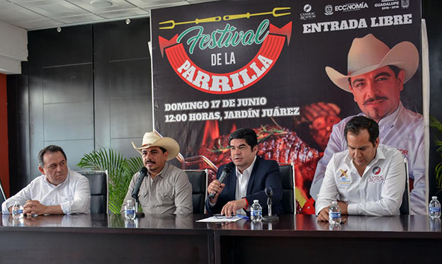Guadalupe, Zac.- El gobierno de Guadalupe en coordinación con la Secretaría de Economía de Zacatecas (Sezac), y la Cámara Nacional de la Industria de Restaurantes y Alimentos Condimentados (Canirac), dieron a conocer los detalles de la primera edición del Festival de la Parrilla que se llevará a cabo el próximo domingo 17 de junio en el Jardín Juárez de Guadalupe en punto de las 10 de la mañana.