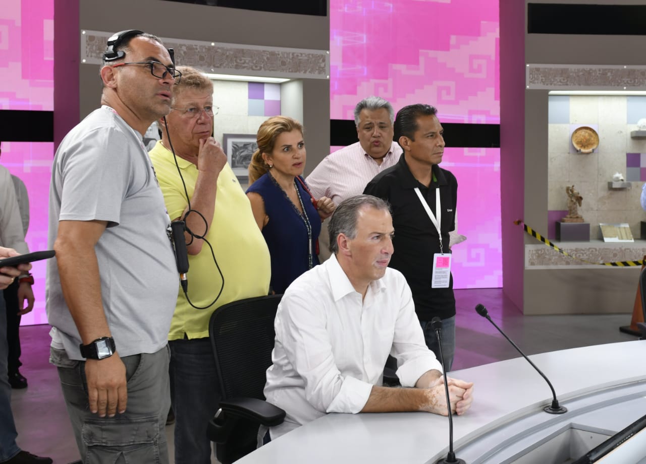 Zacatecas, Zac.- El candidato presidencial por la alianza Todos por México (PRI-PVEM-Panal), José Antonio Meade Kuribreña realizó un ejercicio de preparación para el tercer debate entre aspirantes al Poder Ejecutivo federal en las instalaciones del Museo del Mundo Maya, en Mérida, Yucatán, este lunes.