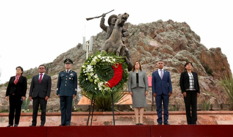 Finalmente, los representantes de los tres Poderes del estado montaron una guardia de honor y colocaron una ofrenda floral ante los monumentos ecuestres de Francisco Villa, Felipe Ángeles y Pánfilo Natera; además, soldados del Ejército Mexicano dispararon una salva en honor de los héroes revolucionarios.