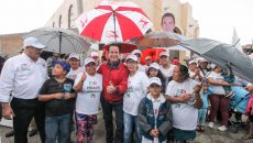 “Agradezco su presencia, agradezco que permanezcan con el apoyo para este proyecto para los candidatos del tricolor, que pese a la lluvia sigan con ese ánimo, y claro, gracias por ese respaldo”, afirmó Medrano Quezada.