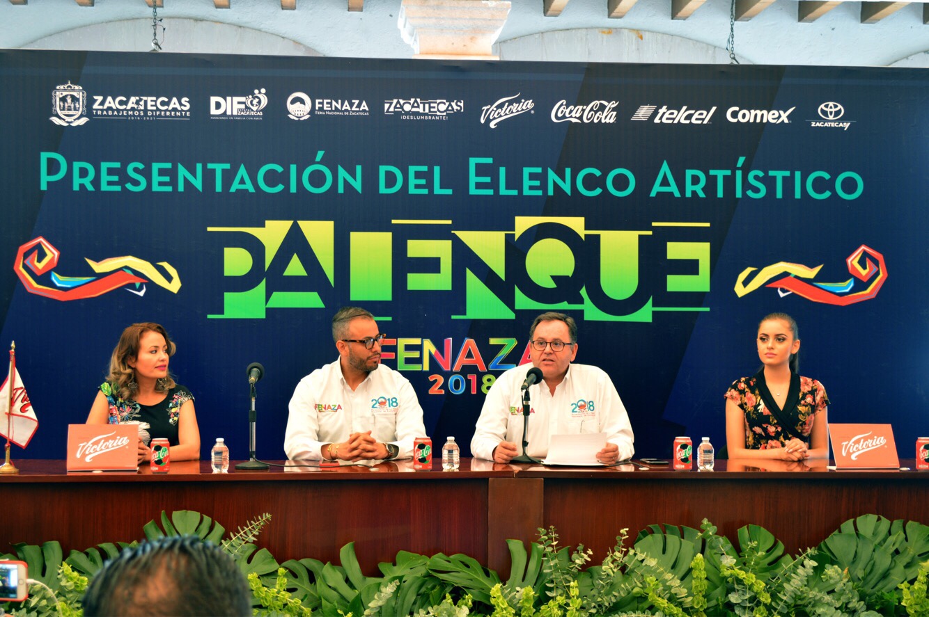 Zacatecas, Zac.- El patronato de la Feria Nacional de Zacatecas, que encabeza Federico Borrego Iturbe, presentó ante los medios de comunicación e invitados especiales el elenco que actuará en el palenque 2018.